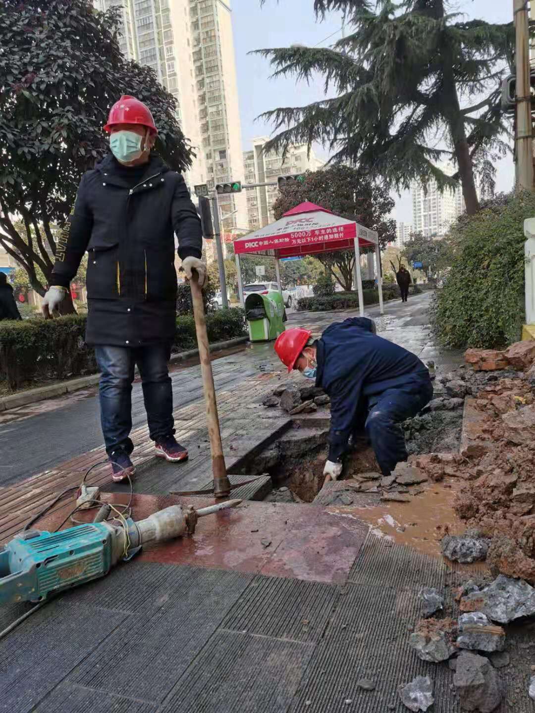 1月28日上午8時許,維修公司接到市民報警,塔影路與白云大道交匯處農(nóng)行家屬區(qū)門口DN100供水管道爆管,近100戶居民300多人用水告急,維修公司迅速啟動應(yīng)急搶修預(yù)案,供水設(shè)施巡查維修人員做好安全防護(hù)趕赴現(xiàn)場,縮小停水范圍,開展搶修,克服地面硬化、并行管道多、工程機(jī)械不能開挖等不利條件,硬是用人工開鑿,把漏點(diǎn)準(zhǔn)確找到,目前已奮戰(zhàn)了近3個小時,預(yù)計(jì)在中午12時前可恢復(fù)供水。
