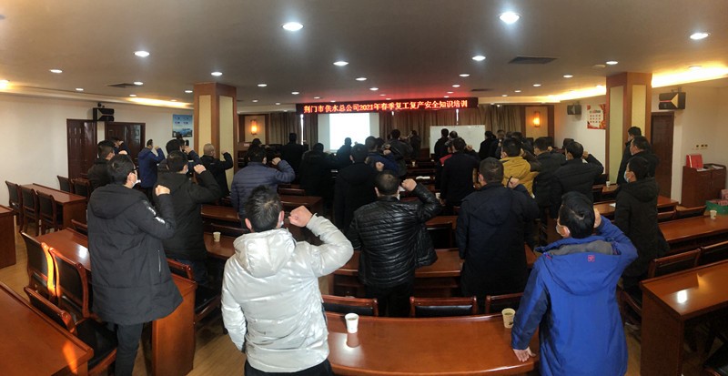 2021年3月2日,供水總公司為確保節(jié)后工程項目開復工有序有力推進。公司組織了荊門市給排水安裝工程有限公司、荊門市市政順泉有限公司、維修公司等5個施工單位荊門萬通勞務有限公司、湖北凱越工程建設有限公司、荊門正宏建筑勞務有限公司等16家勞務分包單位參加了此次培訓。