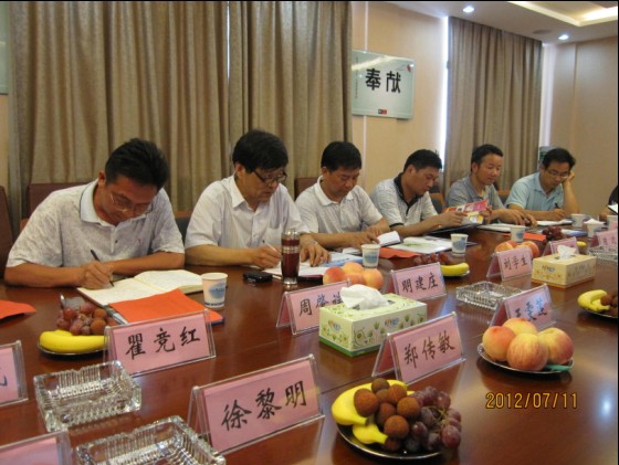 圖為十堰市物價(jià)局領(lǐng)導(dǎo)偕十堰市自來(lái)水公司董事長(zhǎng)劉學(xué)生、東風(fēng)汽車(chē)公司水務(wù)公司總經(jīng)理周肇端與我司交流。