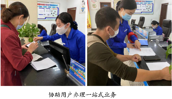 收費(fèi)中心6名黨員佩戴黨徽,在各自崗位上帶頭做好服務(wù)。集團(tuán)各營(yíng)業(yè)廳均設(shè)置“黨員示范崗”和 “學(xué)雷鋒志愿服務(wù)崗”,配備緊急醫(yī)用藥品和應(yīng)急物資,以備用戶不時(shí)之需。志愿者們配好綬帶上崗,主動(dòng)回復(fù)業(yè)務(wù)咨詢,做好答疑解惑,貼心為困難老人代辦業(yè)務(wù),贏得用戶一致好評(píng)。