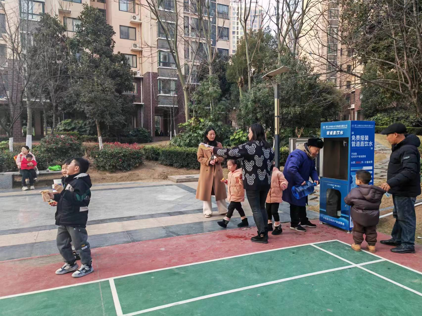 圖為小區(qū)居民免費(fèi)體驗(yàn)管道直飲水