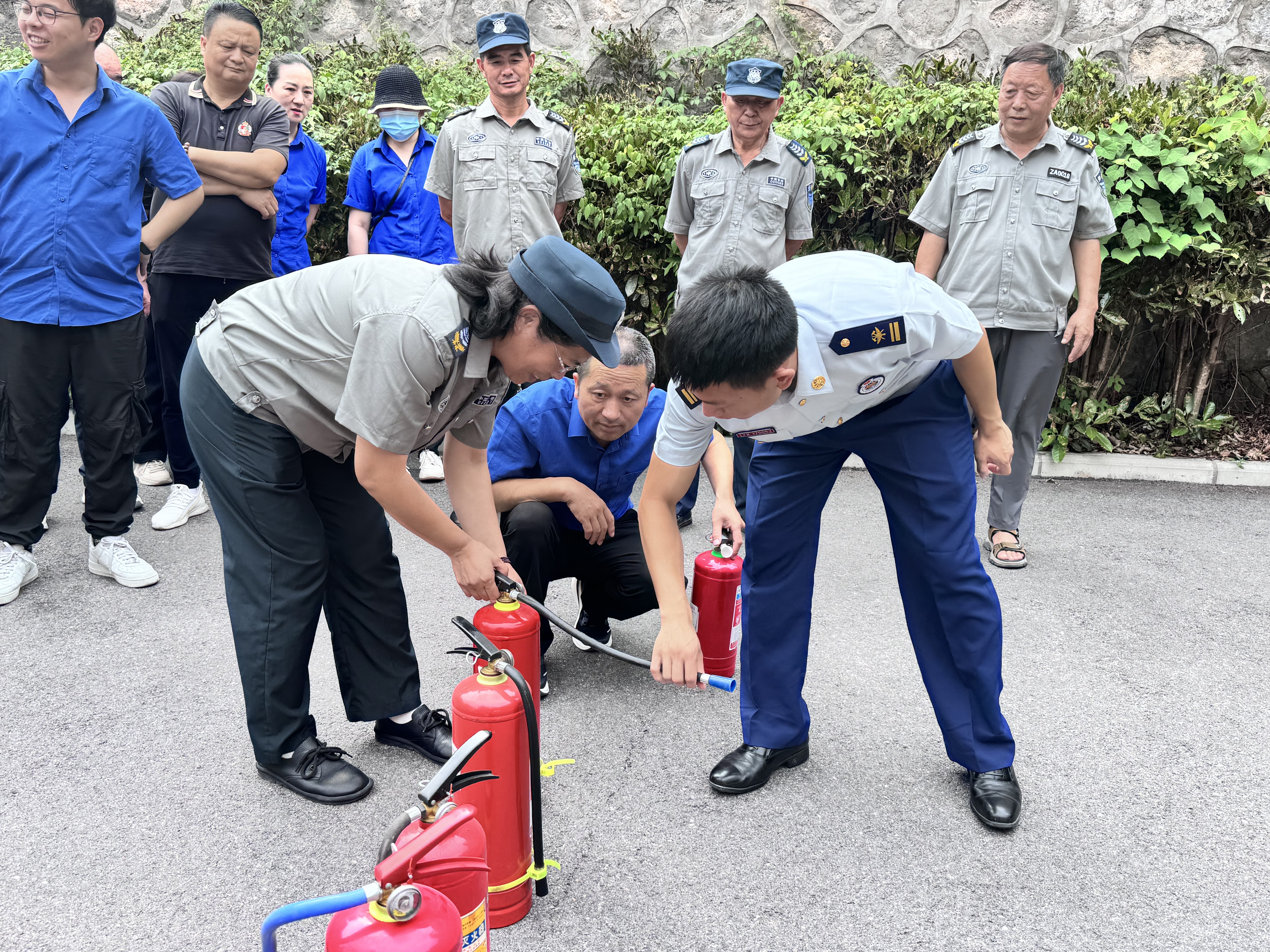 隨后,參人員在馬教官的指導下,按規(guī)范使用滅火器滅火,并模擬演練疏散逃生。