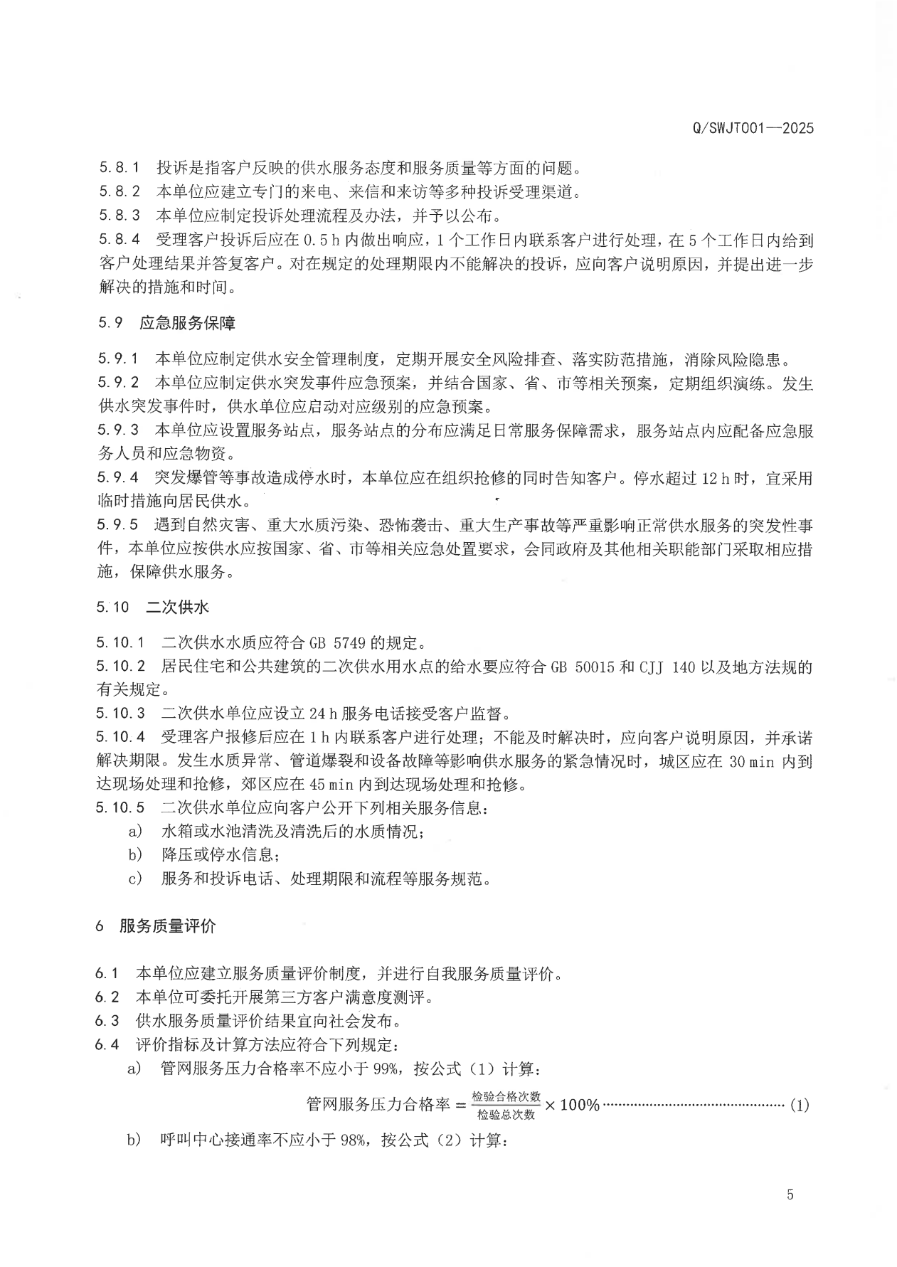 荊門水務(wù)集團企業(yè)標準——供水服務(wù)