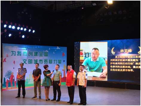 漳河是荊門人民的母親河。從事供水事業(yè)近30年以來,無論酷暑嚴(yán)寒、刮風(fēng)下雨,林文峰堅持每天巡查水源保護(hù)區(qū),帶領(lǐng)水廠員工清理取水口周邊雜物,確保水源干凈整潔和供水安全優(yōu)質(zhì)。頒獎典禮上,林文峰現(xiàn)場講述了近二十年持之以恒的水源地環(huán)保行動,樸實無華卻震撼心靈,為廣大市民樹立了環(huán)保典范。